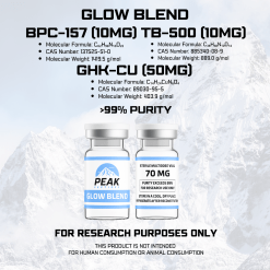 Glow Blend combines BPC-157, TB-500, and GHK-Cu for a powerful recovery and rejuvenation formula. Designed to promote tissue repair, improve skin health, and support anti-aging, this blend enhances healing at both the structural and cellular level for visible and long-term benefits.